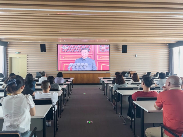 上午9時(shí),全體員工聚精會(huì)神地觀(guān)看直播畫(huà)面,不時(shí)發(fā)出陣陣贊嘆。當(dāng)國(guó)旗護(hù)衛(wèi)隊(duì)邁著鏗鏘有力的步伐走向升旗區(qū),當(dāng)雄壯的《義勇軍進(jìn)行曲》響徹天安門(mén)廣場(chǎng),觀(guān)看現(xiàn)場(chǎng)的員工們自發(fā)起身,與現(xiàn)場(chǎng)同步高唱國(guó)歌,表達(dá)對(duì)祖國(guó)的深切熱愛(ài)和崇高敬意。